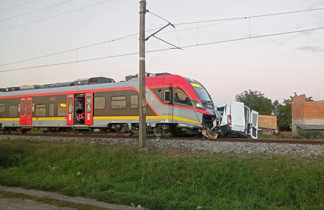 Wypadek na przejeździe kolejowym. Dostawczak wjechał pod pociąg