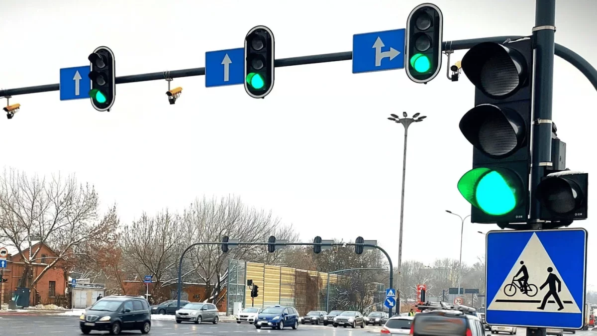 Autor: Centrum Automatycznego Nadzoru nad Ruchem Drogowym | Opis: System RedLight na skrzyżowaniu Al. Jana Pawła II i ul. Obywatelskiej w Łodzi