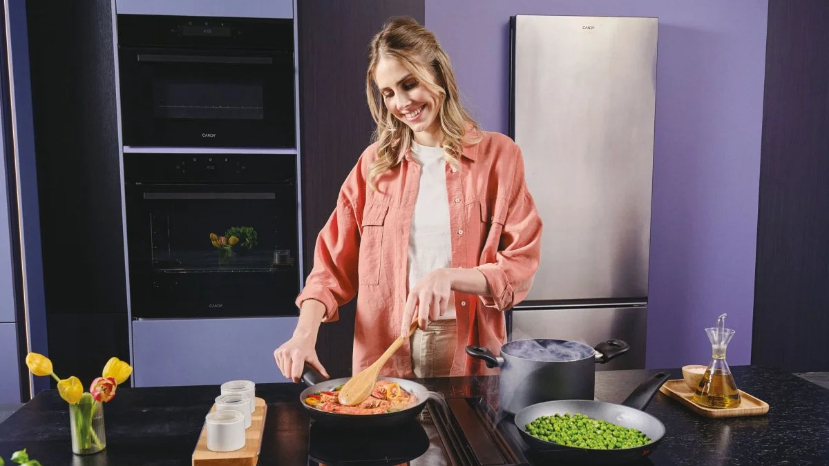 Nowy design marki charakteryzuje również płyty grzewcze i okapy, w tym absolutną nowość. Candy Cook Induction Hood to płyta indukcyjna ze zintegrowanym okapem i nowymi funkcjami, które oferują innowacyjne doświadczenia podczas gotowania. Rozwiązanie, które po raz kolejny ulepsza codzienne życie dzięki funkcjom, które sprawiają, że idealnie nadaje się do każdego stylu życia, oszczędzając czas i energię oraz dostosowując się do każdej kuchni i otoczenia. Okap indukcyjny Candy Cook to urządzenie dwa w jednym, które zapobiega rozchodzeniu się oparów po całym wnętrzu, utrzymując kuchnię świeżą i czystą: smażenie lub gotowanie ryb jest teraz proste, niezależnie od wielkości pomieszczenia, w którym gotujesz. Candy zdaje sobie sprawę, że każda kuchnia jest wyjątkowa, dlatego oferuje dwie różne metody instalacji – wersję z wyciągiem lub wersję z filtrem węglowym – oraz dwa różne rozmiary (60 cm lub 80 cm). Okap jest bardzo łatwy w obsłudze, a wszystkimi strefami gotowania można sterować bezpośrednio z centralnego panelu sterowania na płycie grzewczej. A dzięki funkcji Keep Warm jedzenie może być utrzymywane w cieple do momentu podania, aby poczekać na spóźnialskich lub po prostu móc dłużej porozmawiać przy stole.