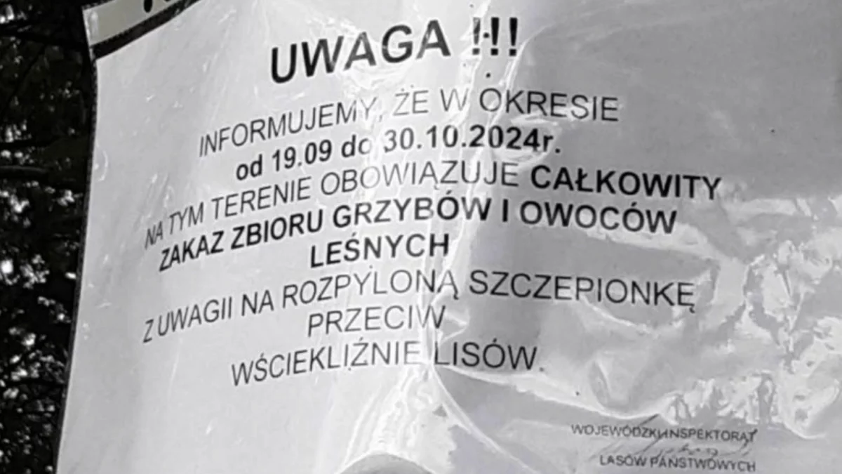 - Informujemy, że nie ma żadnego zakazu zbioru grzybów, ani nie była rozpylana żadna szczepionka przeciwko wściekliźnie lisów - szczepionki faktycznie zrzucane są z samolotu, ale w postaci blistra z przynętą do rozgryzienia przez lisa, przez co dochodzi do zetknięcia się szczepionki z błonami śluzowymi zwierzęcia).