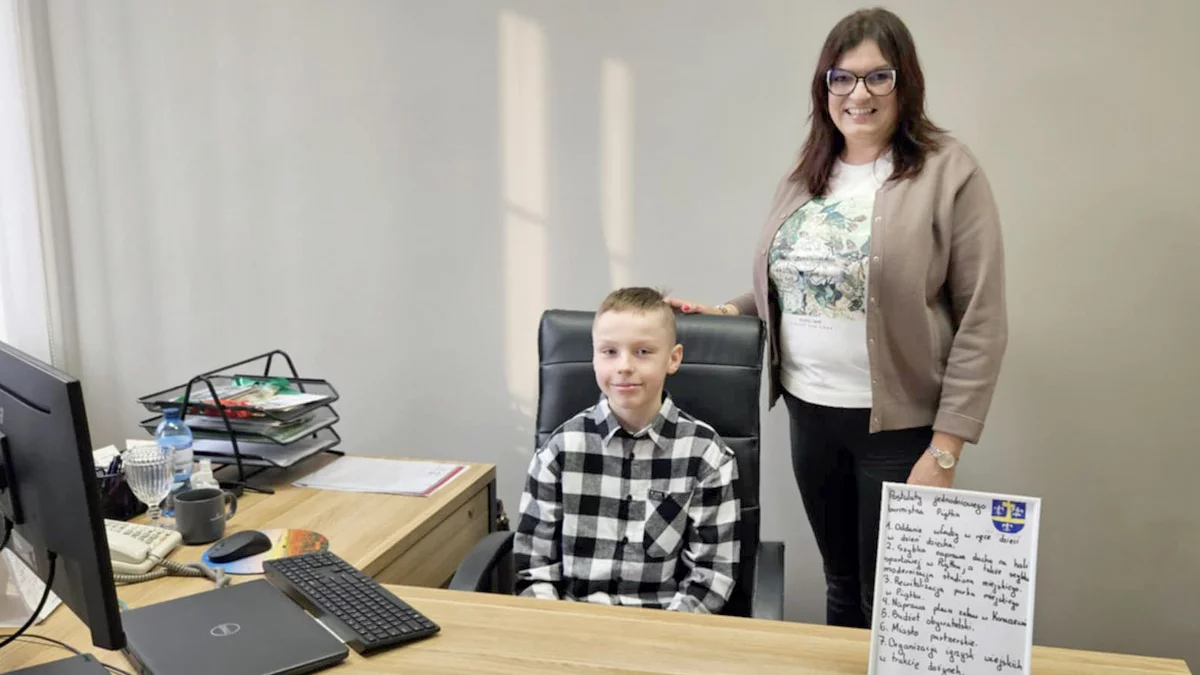 - Z samego rana Wojtek stawił się w urzędzie, gdzie został powitany przez panią Annę Matusiak. Do objęcia stanowiska burmistrza Wojtek solidnie się przygotował i już na wstępie swojego „urzędowania” przedstawił listę postulatów, które zostały wnikliwie i skrupulatnie omówione. Tego dnia plan zajęć młodego burmistrza był wyjątkowo bogaty. Wojtek zapoznał się z pracą Urzędu Miejskiego. Odwiedził wszystkie referaty i poznał zakresy obowiązków oraz wiele ciekawostek dotyczących pracy na poszczególnych stanowiskach. Duże zainteresowanie wzbudziła w nim cyfryzacja urzędu i możliwość załatwiania wielu spraw za pośrednictwem Internetu bez konieczności wizyty w urzędzie