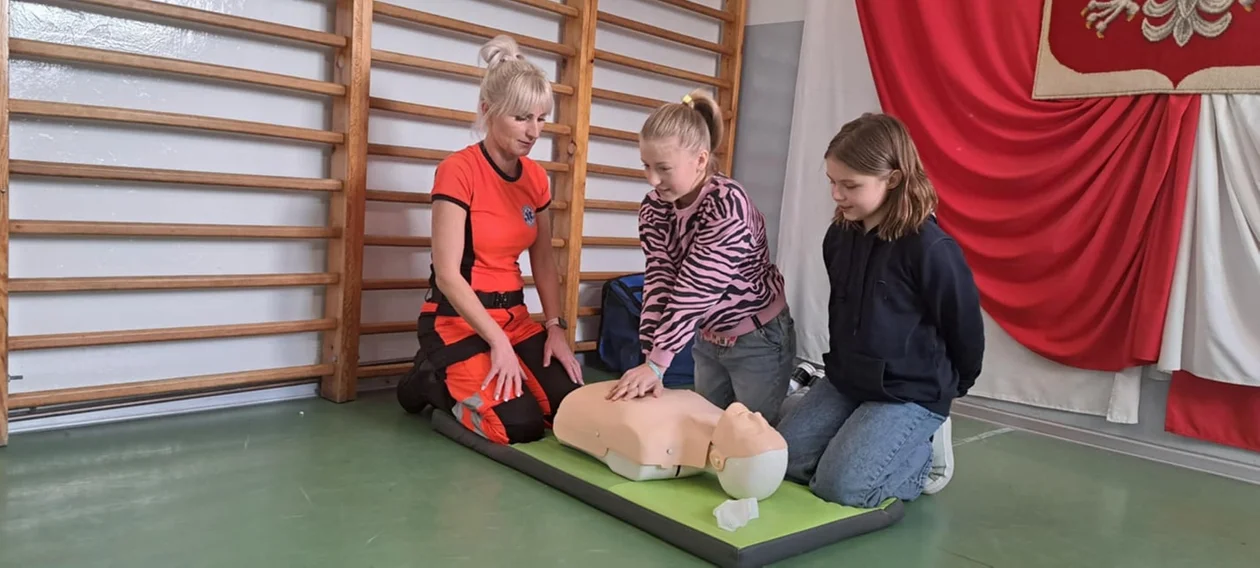 - Pani z ratownictwa medycznego także opowiedziała zebranym o tym, na czym polega jej praca. Ponadto zaprezentowała uczniom elementy pierwszej pomocy przedmedycznej, która jest jednym z podstawowych kierunków realizacji polityki oświatowej państwa w roku szkolnym 2024/2025.